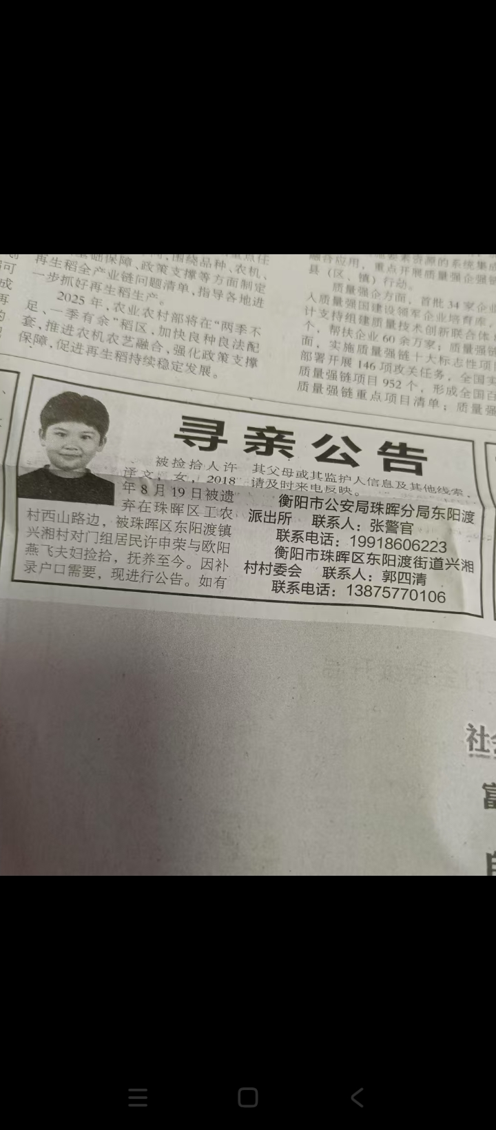 正文 失踪人员:许译文 admin V管理员 /昨天/551阅读/0评论 0415 失踪人员:许译文 (寻亲网编号:10714) 基本信息: 姓 名:许译文 性 别:女性 出生日期:2018.08.12 失踪日期: 失踪地点:湖南省衡阳市珠晖区西山区 失踪时身高:0.6 联系方式:15211467299 详细介绍: 信息图片: 寻人启事资料、照片等均由用户提供,如侵犯任何第三人肖像权、隐私权或其他合法权益,请联系本站删除!